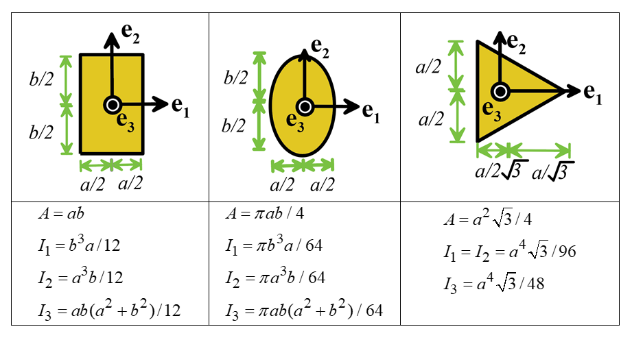 directions are listed for a few simple geometries in the table below. Recall also that area moments of inertia for hollow sections can be calculated by