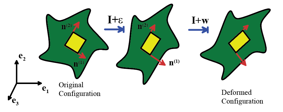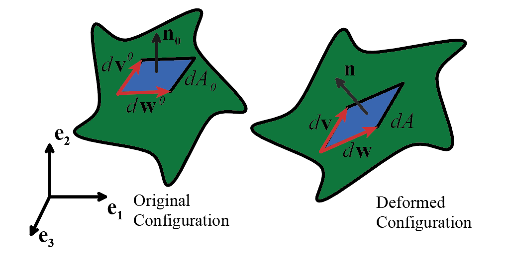 choose the undeformed solid as reference configuration, and, let (with i=1,2