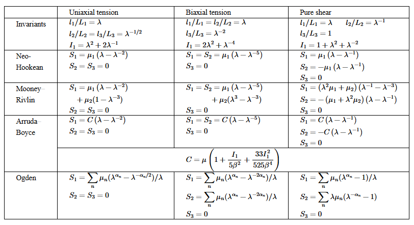 and don’t need to characterize response to volumetric compression in detail.  For the rubber elasticity models listed above,