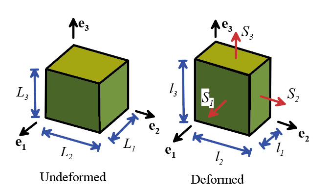 where  are material properties.  For small deformations  are the shear and bulk modulus, respectively. This