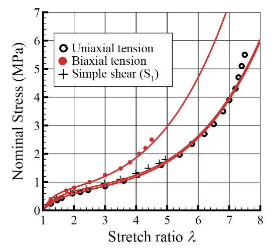solid lines in the figure show the predictions of the Ogden model (which gives