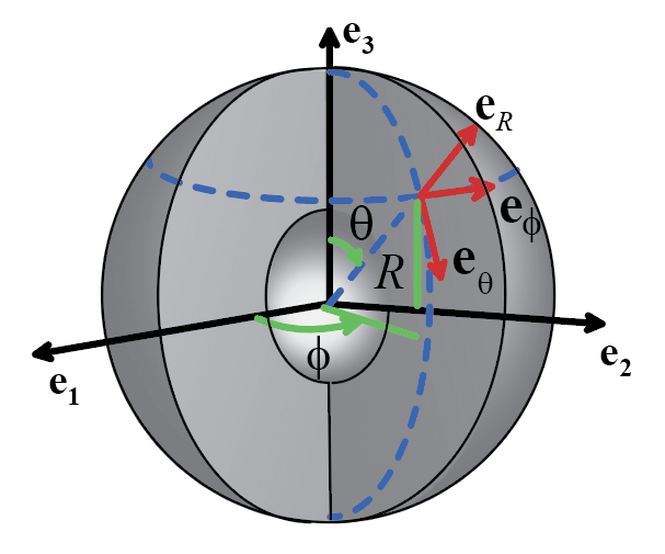 elasticity in spherical coordinates (see Appendix D), or alternatively can be