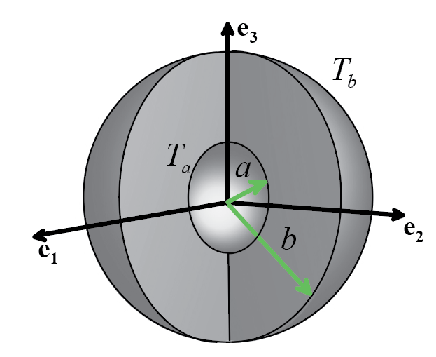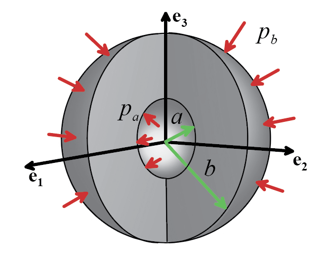 spherically symmetric problem is illustrated in the figure. We consider a hollow, spherical solid, which