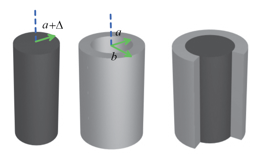 inner radius a. Suppose that a solid shaft with radius , with is inserted into the cylinder as shown above (In practice, this is done by heating the
