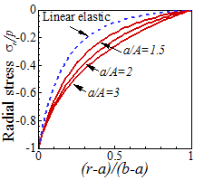 and B/A=3. The radial stress remains