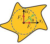 of the figure, which are pushed into contact by a forces acting perpendicular to the line of contact,