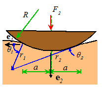 indenter sinks into the elastic solid, so that the two solids make contact over