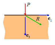 displacements and stresses induced by a point force acting tangent to the surface of a