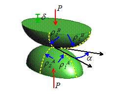 elliptical, with semi-axes . The dimensions of the contact area may be