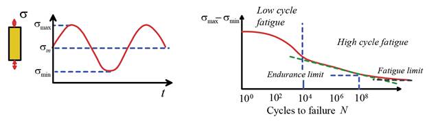 the specimen fails very quickly (less than 10 000 cycles). This regime of behavior is known as `low