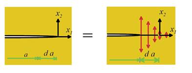 A crack of length a can be regarded as a crack with which is being pinched closed by an