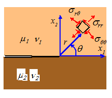 elastic solids. The material above the crack has shear modulus and Poisson’s
